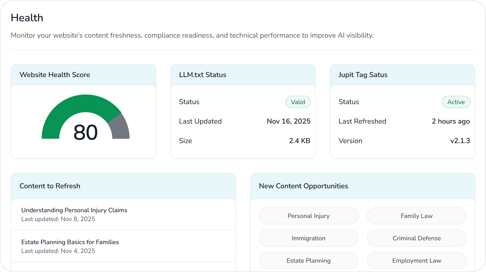 Check technical health (Schema, LLM.txt)
